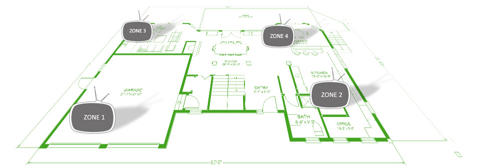 Atmosphere is available in four models, from a single-zone to a four-zone version. For example, our four-zone version will deliver individually controlled content in up to four areas from one system.